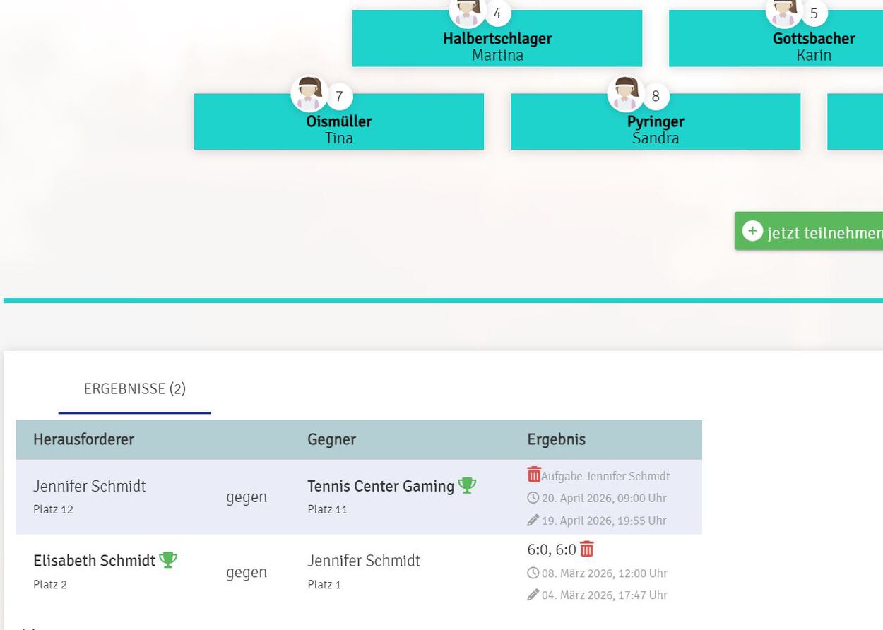 Ergebnis/Tausch: Gewinnt der Herausforderer, übernimmt er den Platz des Unterlegenen. Der Verlierer rutscht entsprechend nach hinten.