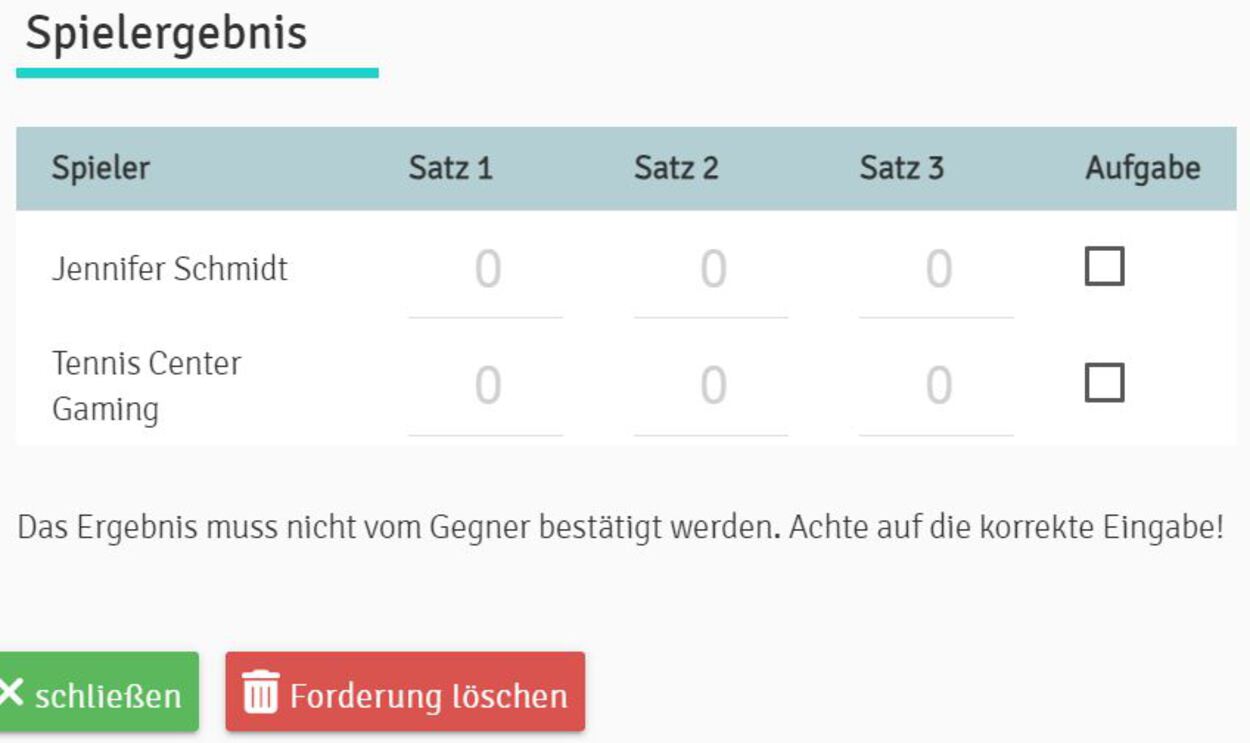 3. Nach Forderung ERGEBNIS eintragen. (Auf gelben Spieltermin klicken oder unter der Pyramide in der Liste der Forderungen eintragen)